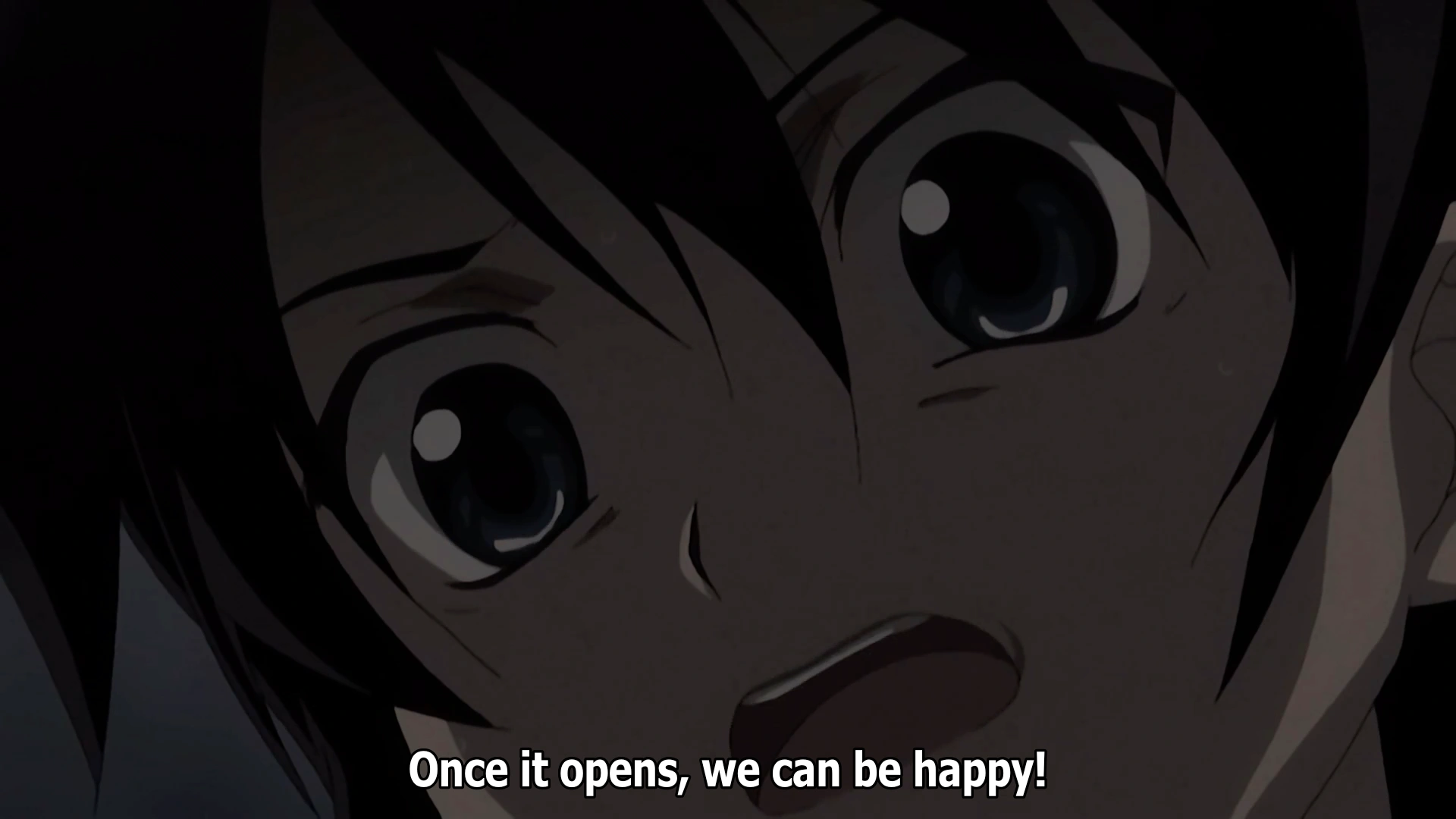 A flashlight shines across a wall, and Eriko fears that someone is coming. She insists that the key will open the lock since she tried it.