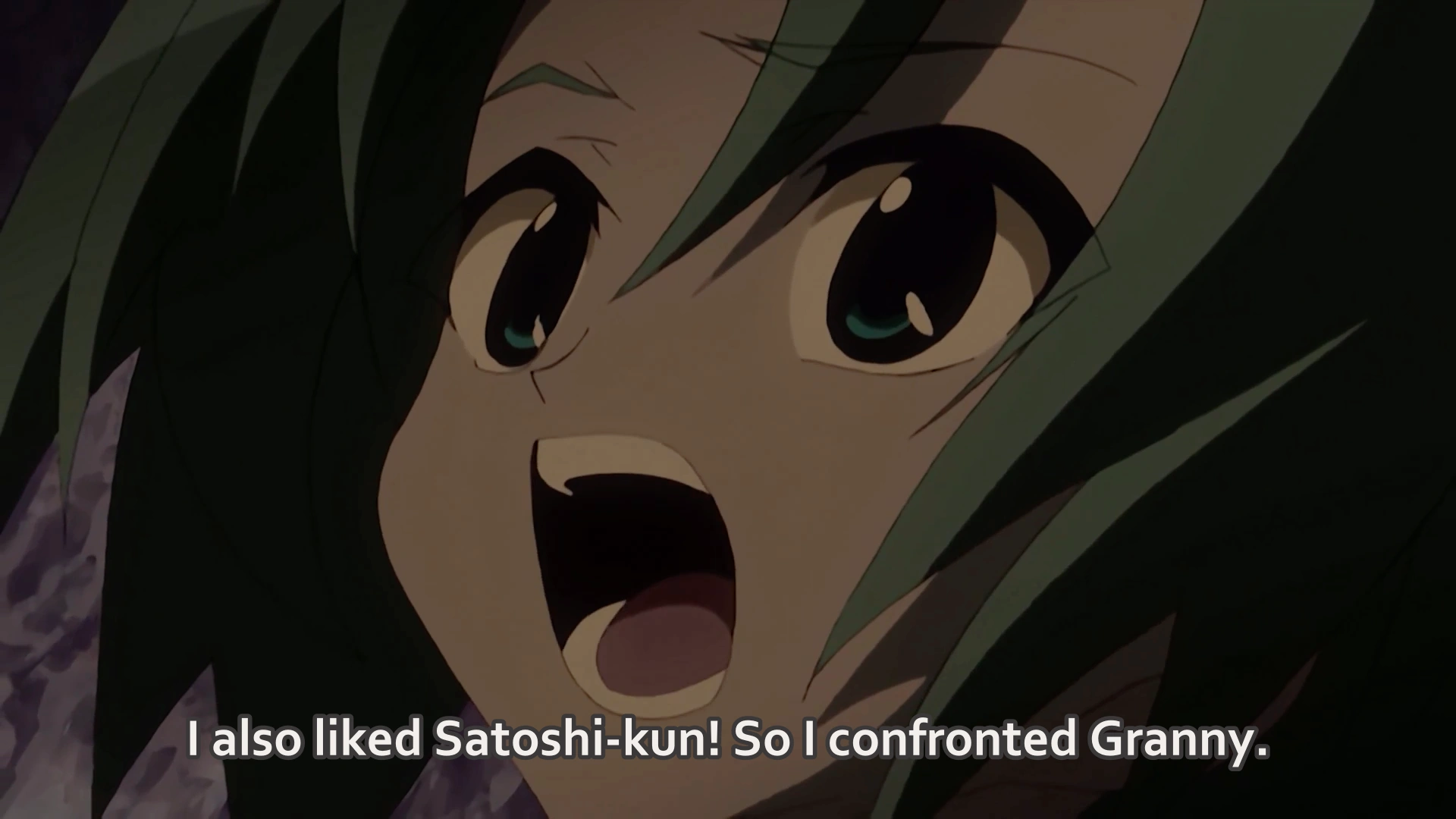 Excited, she screams, "Satoshi-kun, I've been waiting for you!" but then recalls her promise to Satoshi that she would look after Satoko.