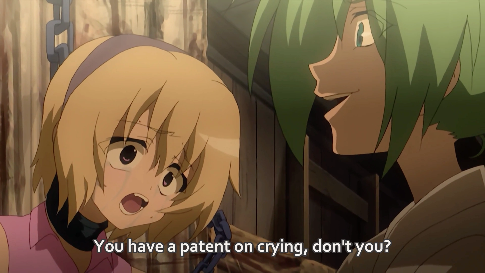 Shion laughs: "Wouldn't it be nice if he came back?" Satoko insists that he will. She will apologize to him for relying on him. She will no longer simply cry for him. She will stand on her own. As Satoko promises all of this, her expression deteriorates into the truly horrific. She finally replies: "Don't think you're tough, you brat!" Satoko invites Shion to keep stabbing her if it entertains her, "but I won't cry!"