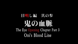 At the Sonozaki residence, Mion pours sake for Sonozaki Oryō who seems quite happy. A large number of people enjoy eating and drinking. Shion sits in a corner flushed. Later, Mion, Oryō, and Akane stand outside to say goodbye to their guests as they leave. Shion lays in her bed. She stirs, looks up, then rises. She notices that the bed next to her is empty with the covers moved to suggest the occupant left. As a clock ticks at 3:03 A.M., Shion walks the hallway. She passes a room with the lights streaming through the shōji. She hears Oryō from within state, "it can't be helped. That youngster was too nosy." Mion replies that they cannot help it, "because she angered Oyashiro-sama."