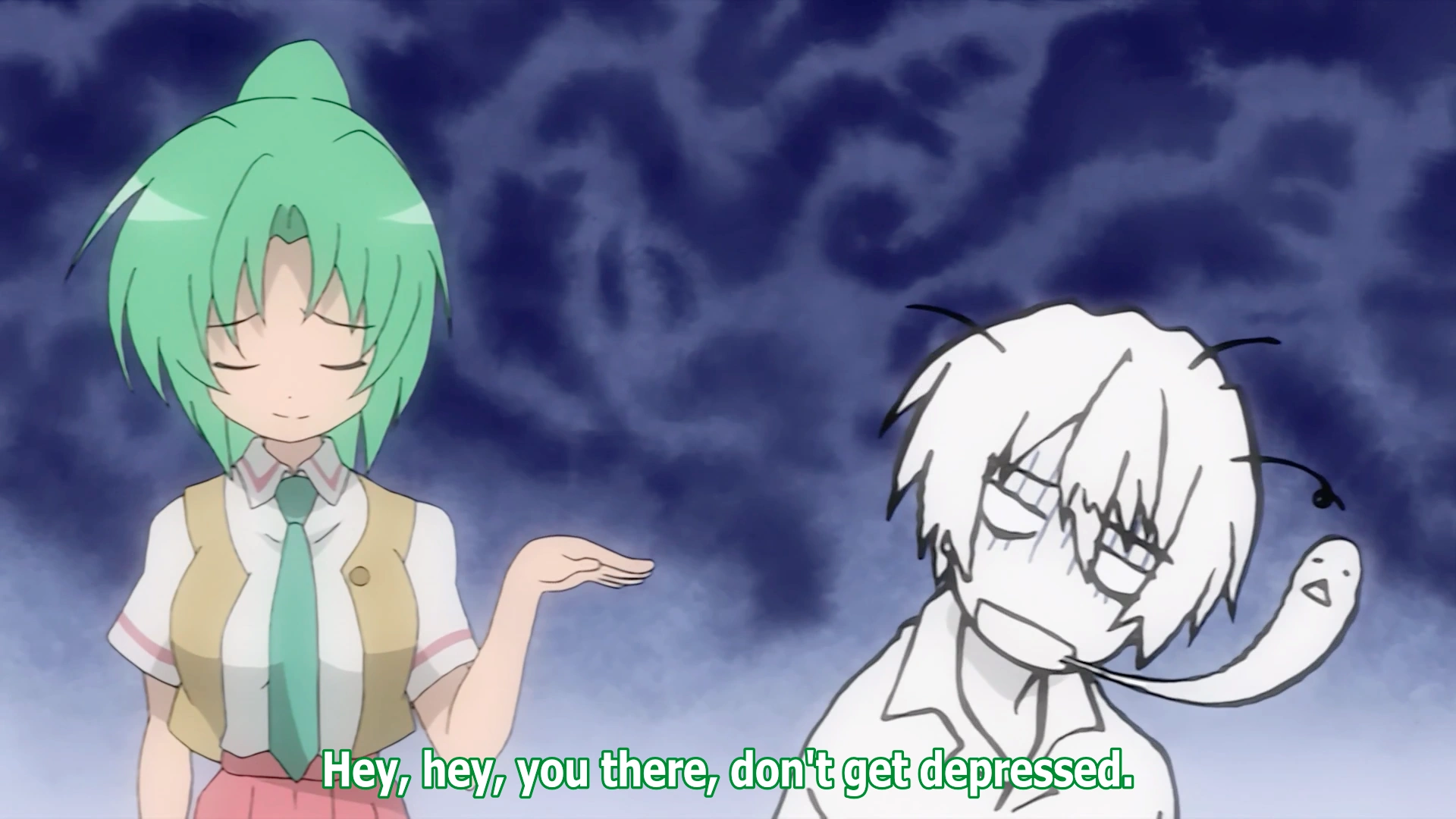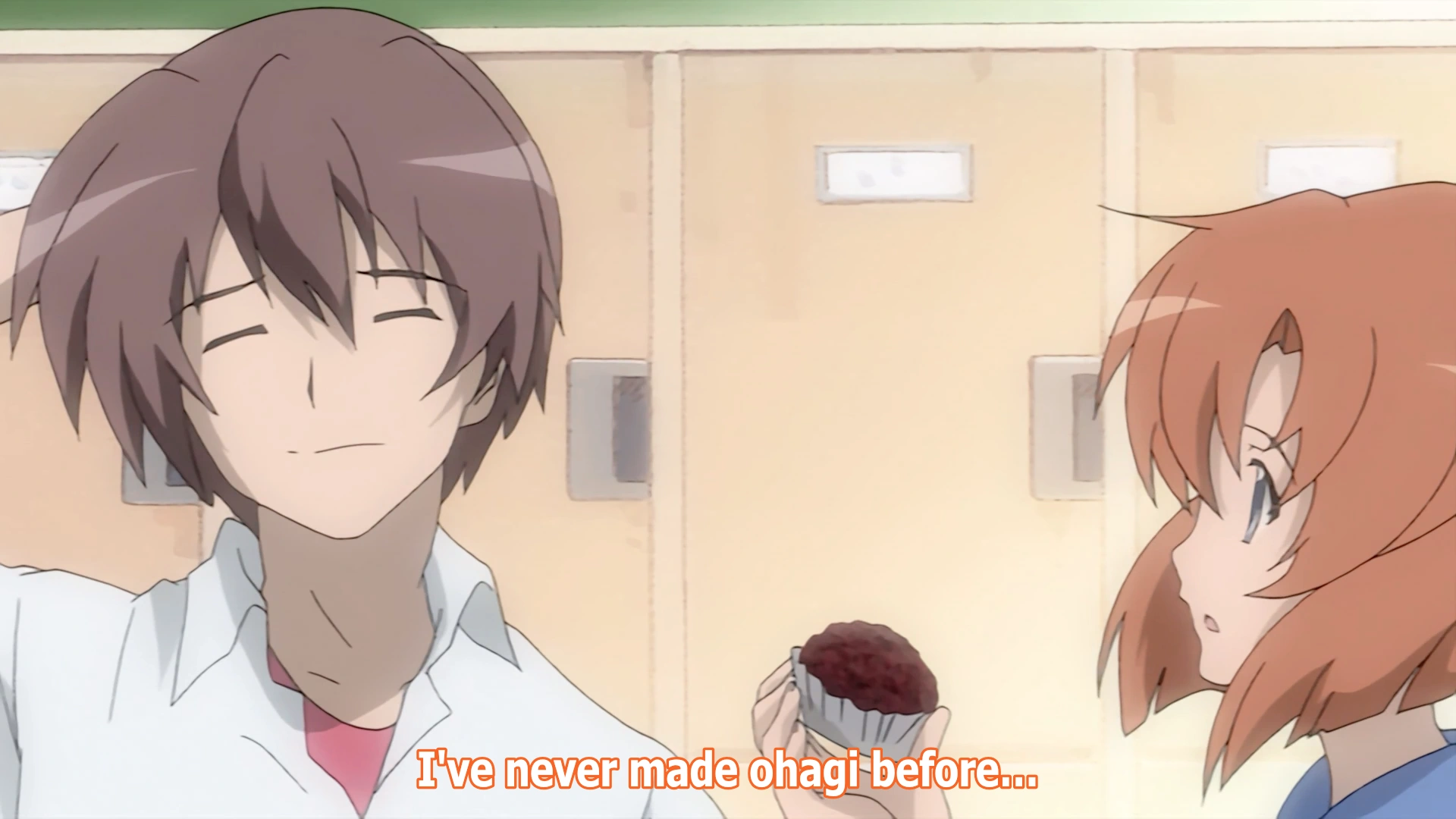 This renders Keiichi into a colorless chibi "dying" as his sad spirit leaves his mouth. Mion consoles him with a wrapped box of snacks which she reveals to be ohagi made by her grandmother.