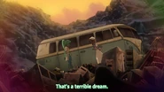 Fearing that her situation would unfold like her dream, Rena explains that she had a talk with Mion as the scene flashes back to her abandoned van in the dump. In the flashback, Mion notes that Rena dreamed that she disposed of the body where they are standing. Rena confesses that she did and would spend every day at the site since she feared if she left someone would discover the body. Mion agrees that Rena has a terrible dream. Rena further confesses that recently all she can think of are violent thoughts. She cannot help imagining killing Mamiya. Mion grabs Rena, and demands that she discuss the situation with her father. She then hugs Rena and tells her that even she would not know how Rena felt so cornered if she did not tell her. Rena looks up and starts to cry.