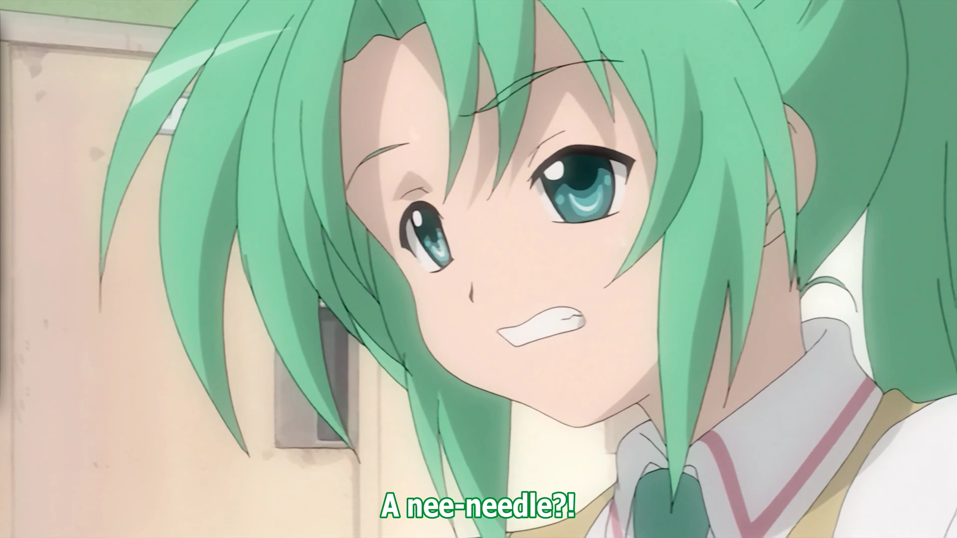 Shion teases her sister that Keiichi is suspicious since Mion brought them. Keiichi stares back at his ohagi and declares that there is no way there would be a needle in it. Mion freaks at this suggestion. Keiichi smiles slyly at her and declares that, "something must be wrong with me for suspecting you." He then takes a bite and finds it delicious. Mion deems him "weird" as the other girls laugh save Rika who stares at him.