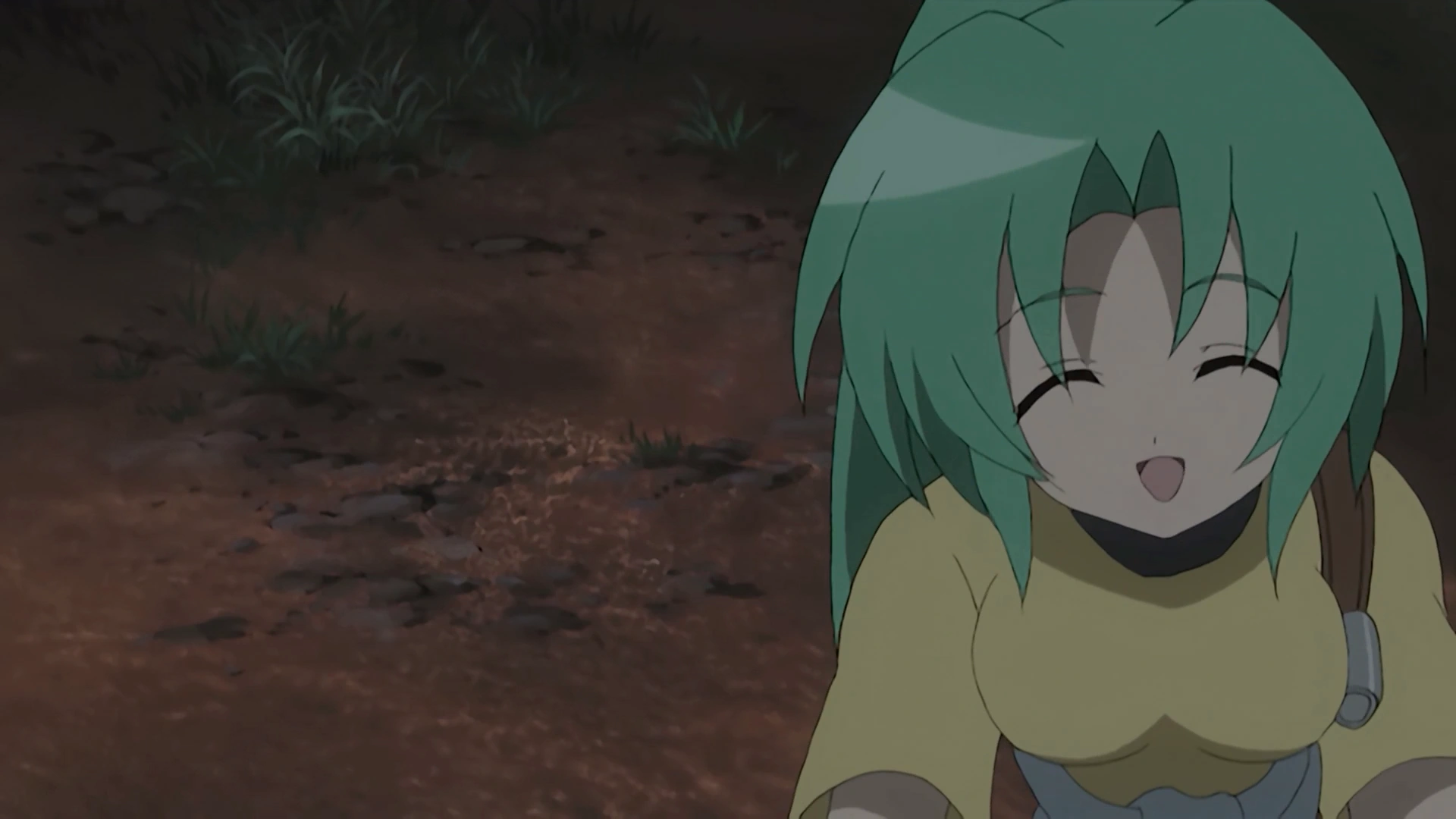 The next day, Rena and Keiichi wait for Mion by the waterwheel. Rena concludes that Mion is presumably fatigued from searching for Rika throughout the night, and Keiichi agrees that she had also been searching for the village headman two nights previously. As they make their way to school, Keiichi wonders where Rika and Satoko went.