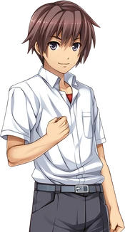 Maebara Keiichi (前原 圭一) is one of the protagonists in the Higurashi no Naku Koro ni series. He serves as the protagonist of four Question Arcs: Onikakushi-hen; Watanagashi-hen; Tatarigoroshi-hen; and Taraimawashi-hen. He acts as the villain in Tsukiotoshi-hen. Other than Akasaka Mamoru in Himatsubushi-hen, he is the only male protagonist. He is a very sociable, charismatic boy with a lively attitude, and his talented tongue allows him to fit in the town quickly and make new friends. While his exact age is never explicitly stated, he is implied to be 14/15 in most media (or around 17 in the live-action adaptations) since he is a grade below Mion, who is facing her final year at their school before entering high school. It is confirmed in the visual novels that his birthday is in April, making him the same age as Mion for a couple of months each year.