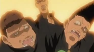 they serve as stereotypical bullies who use the excuse of damage to their bikes to threaten and try to extort various characters. In the sound novel version of Meakashi-hen, it become clear that they stole the bikes. They wear high school uniforms open as stereotypical "delinquents."
