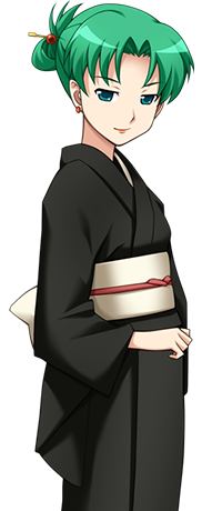 Akane has the same hair color as her daughters, which is depicted in the Sound Novels, color panels, and anime as green. They also have teal eyes. She wears her hair in a traditional fashion. Like her mother, she dresses traditionally, usually in a dark charcoal-coIlored kimono. She is hailed as a very beautiful woman, often garnering attraction from males; notably Ōtaka in Matsuribayashi-hen who does not know who she is when they first meet.