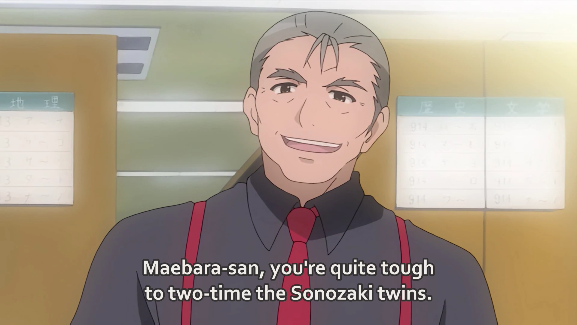Keiichi later meets Shion at the library. He asks her why she asks to meet, but just as she tries to answer, Ōishi appears. He playfully asks them if they are on a date, then wonders if he addresses "Mion" or "Shion," as Shion grimaces.
