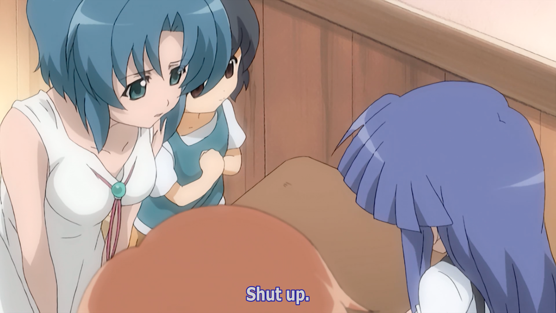 Her sister demands that she calm down. Shion retorts that while they all cry about their helplessness, she will actually do something.